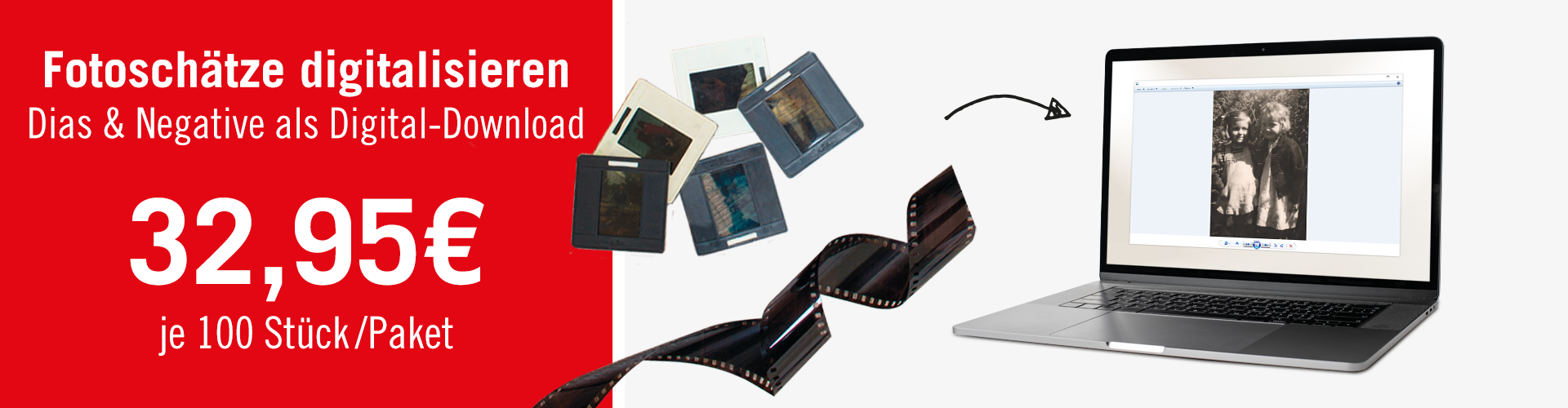 In nur wenigen Schritten werden aus Ihren analogen Aufnahmen digitale Bilder, die Sie bequem per Download-Link erhalten.