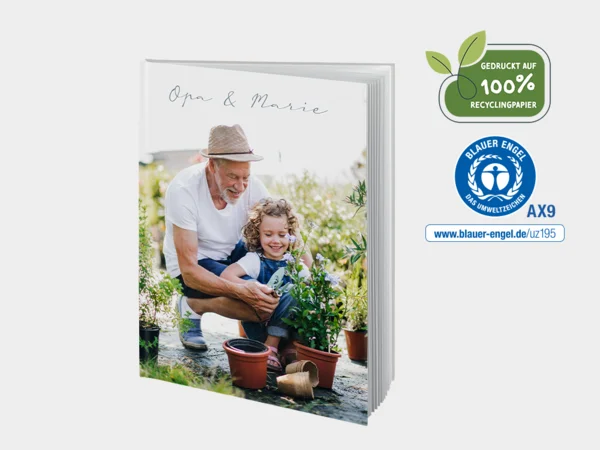 Dank des verstärkten, matten Hardcover-Einbands mit Recyclingpapier sind Ihre Erinnerungen jetzt noch besser geschützt.