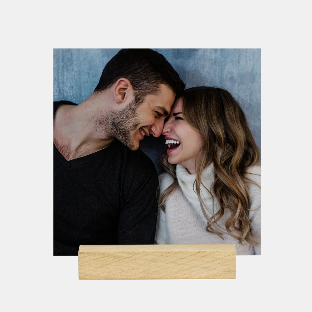 Der Holzaufsteller im quadratischen Format 13 x 13 cm ist auch eine ideale Geschenkoption für Ihre Familie und Freunde. Verwandeln Sie Ihre Erinnerungen in beeindruckende Kunstwerke und verleihen Sie Ihrem Raum eine persönliche Note mit diesem besonderen Accessoire.